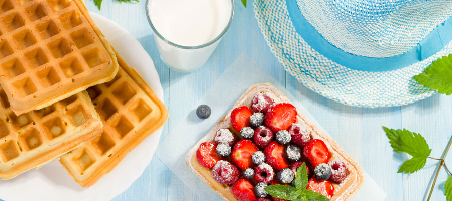 Wafels gemaakt van amandelen en bananen, gluten- en zuivelvrij.
